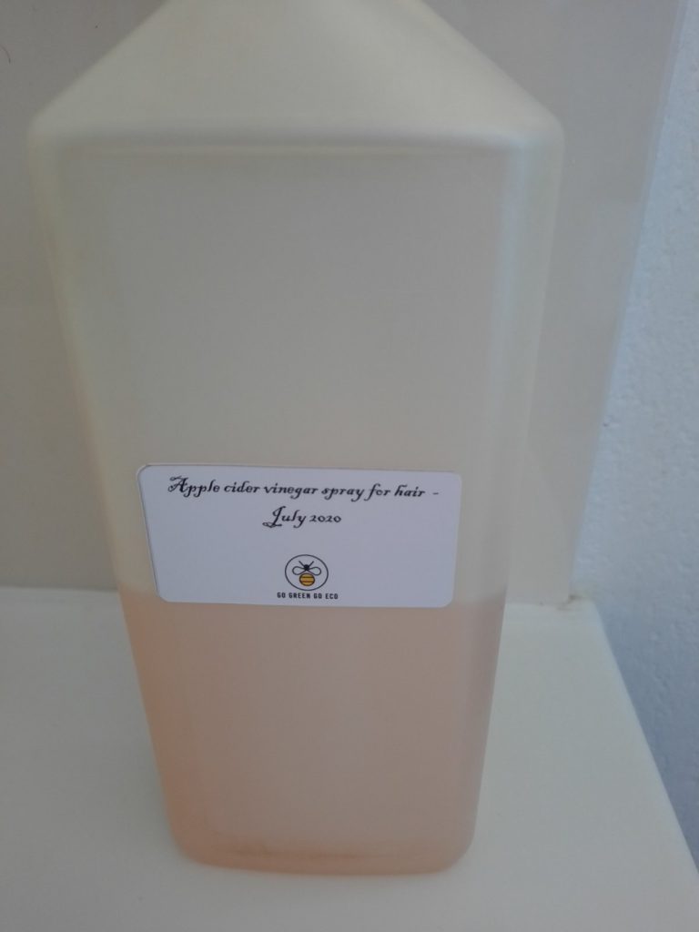 - Making an apple vinegar spray (mix 1/3 of apple vinegar with water) to use it in between washes to remove waxy feeling and avoiding washing hair too often.